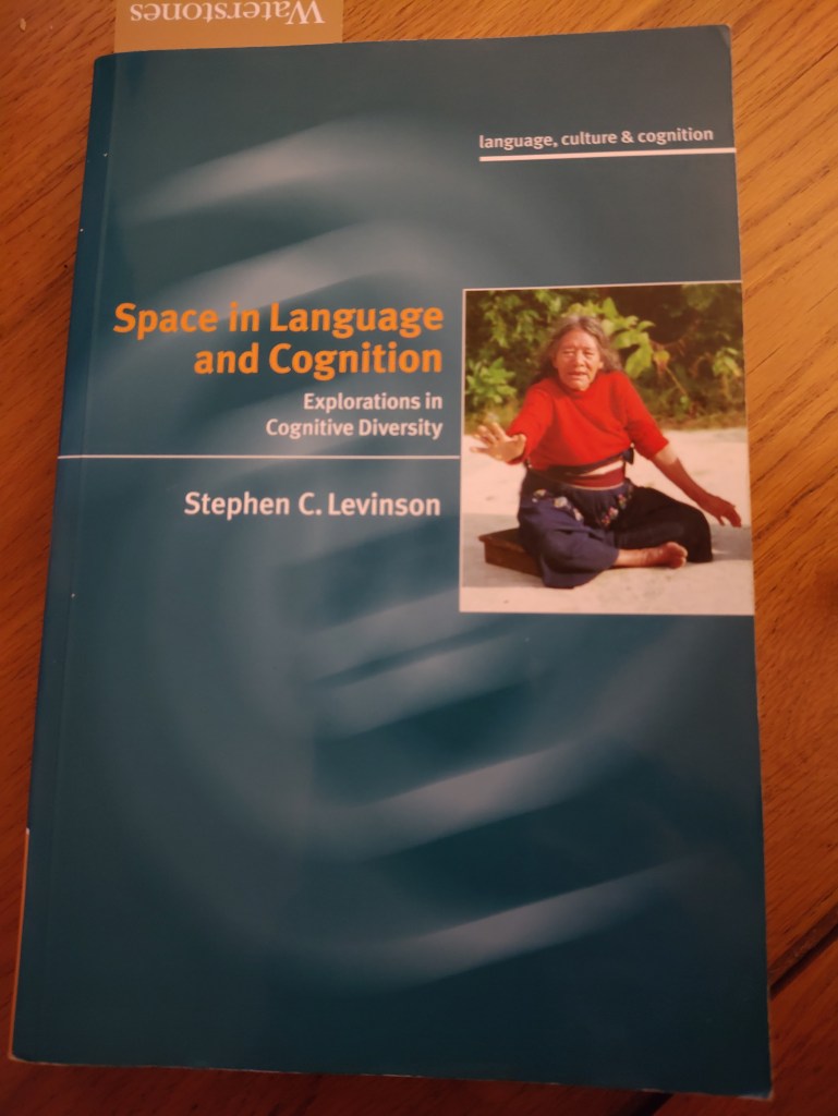 The Sapir–Whorf hypothesis and claims about languages influencing thought are old and widely regarded as falsified. And I think it’s true that the strong version is false, but the weak version about language (and some aspects of culture, which is hard to disentangle from language) influencing thought has some support. And a particularly interesting area which language and culture can influence is spatial thinking and reasoning, as explored by Stephen Levinson in at least three books: Space in Language and Cognition, Grammars of Space, and Demonstratives in Cross-Linguistic Perspective, the first of which I bought from Foyles in London back in 2006.